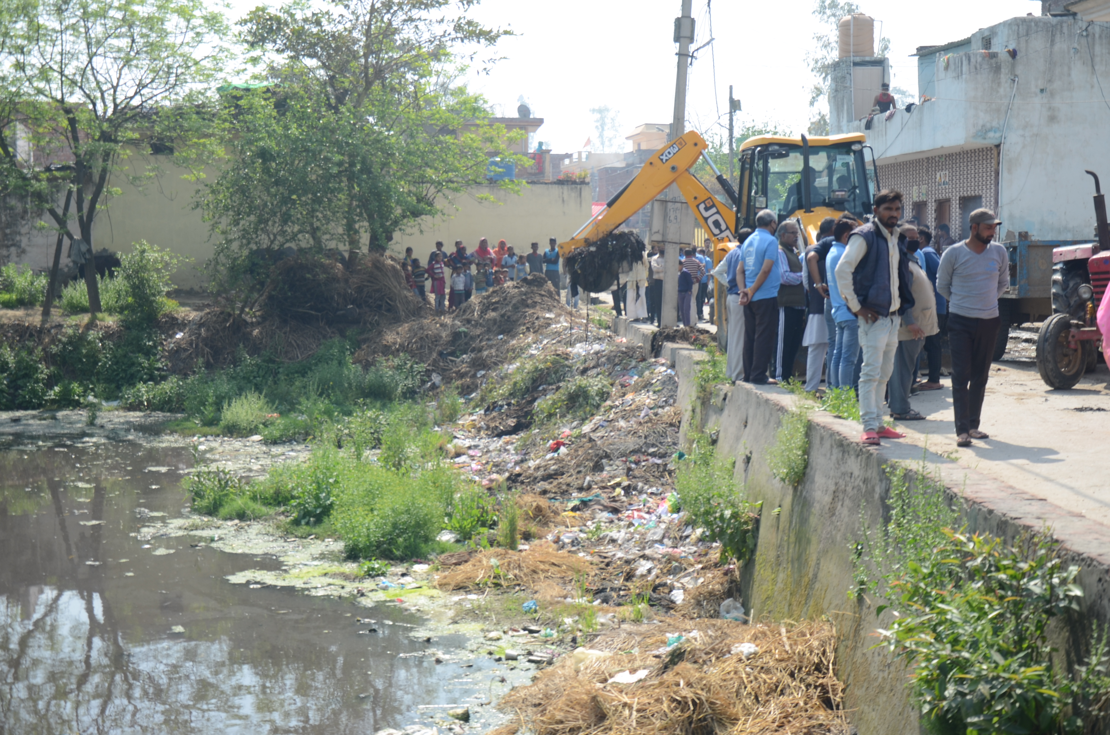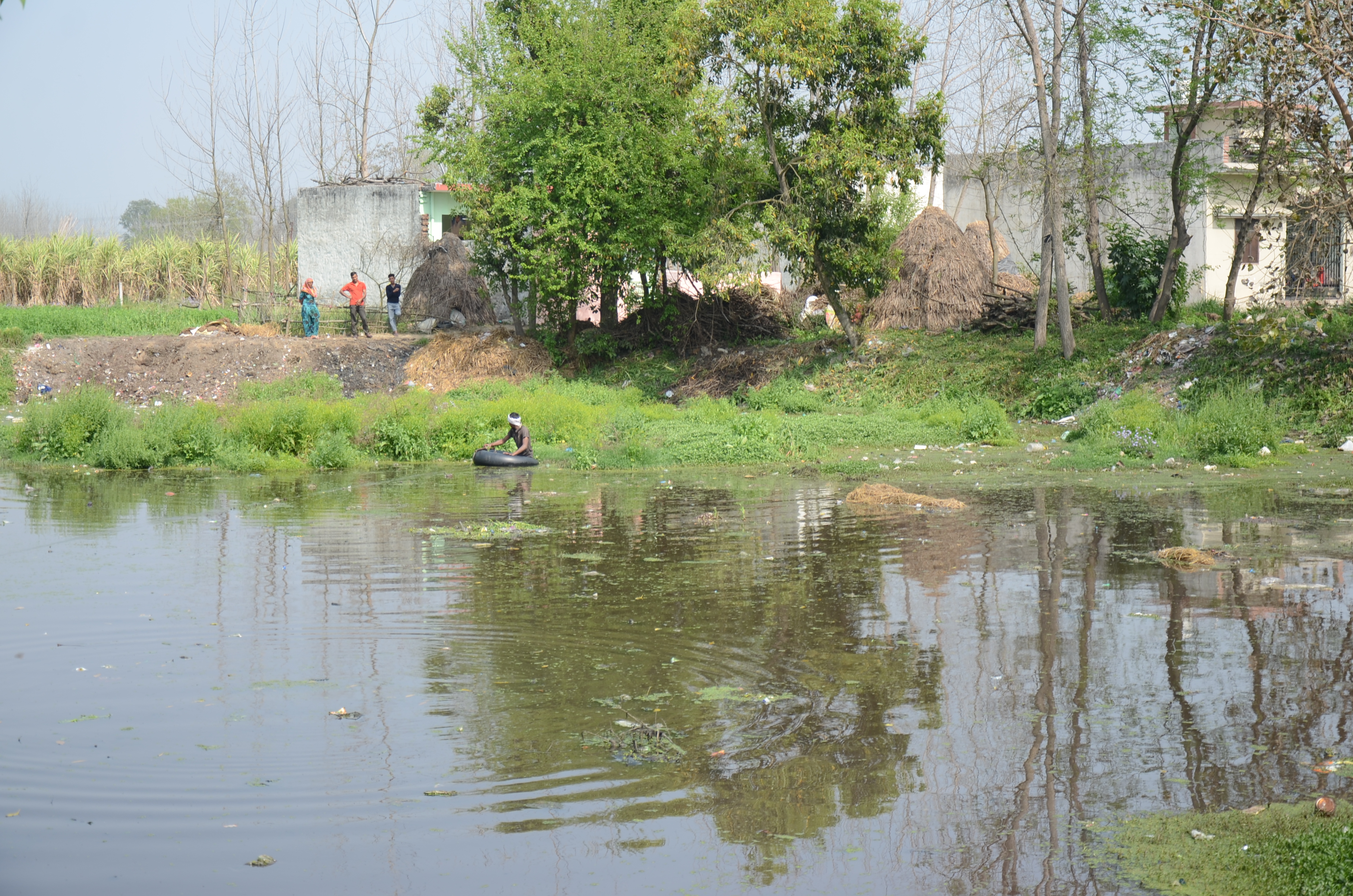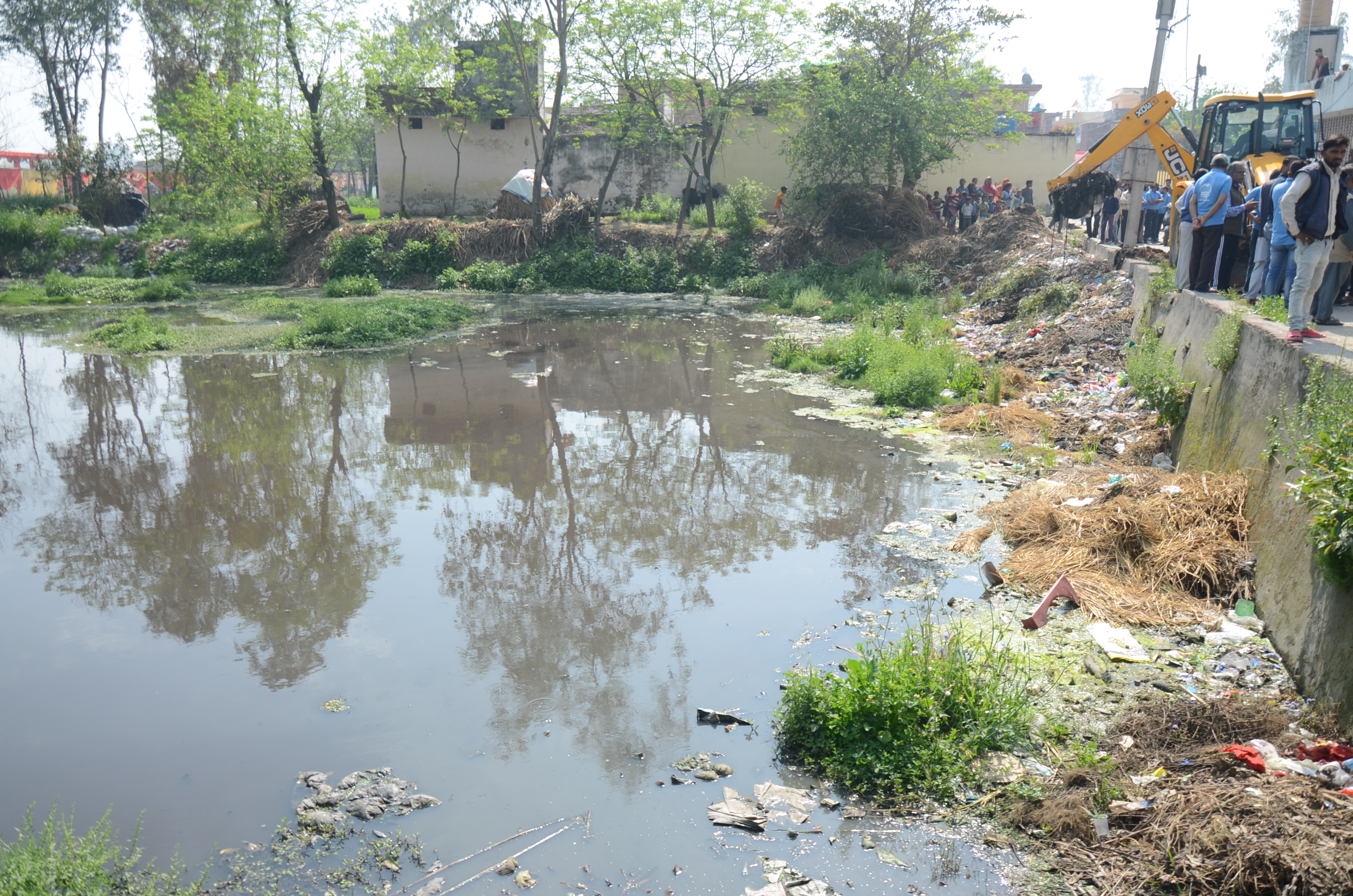 Cleaning of village pond involving local people at Shankar Puri Village