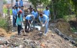 Cleaning of village pond involving local people at Shankar Puri Village