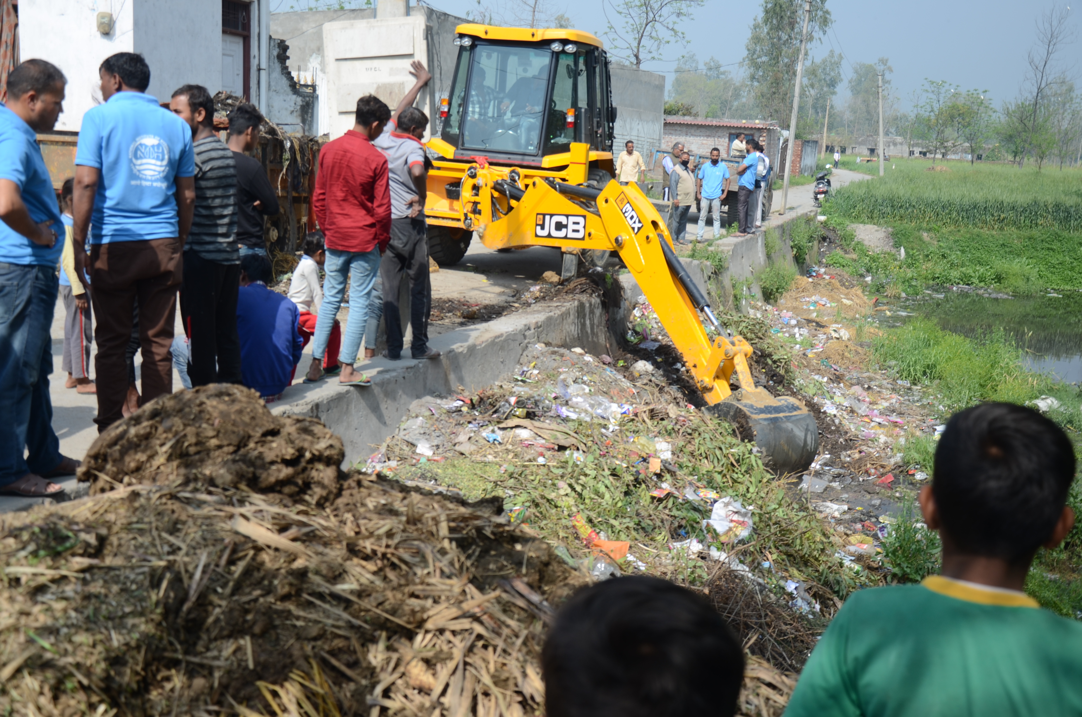 Cleaning of village pond involving local people at Shankar Puri Village
